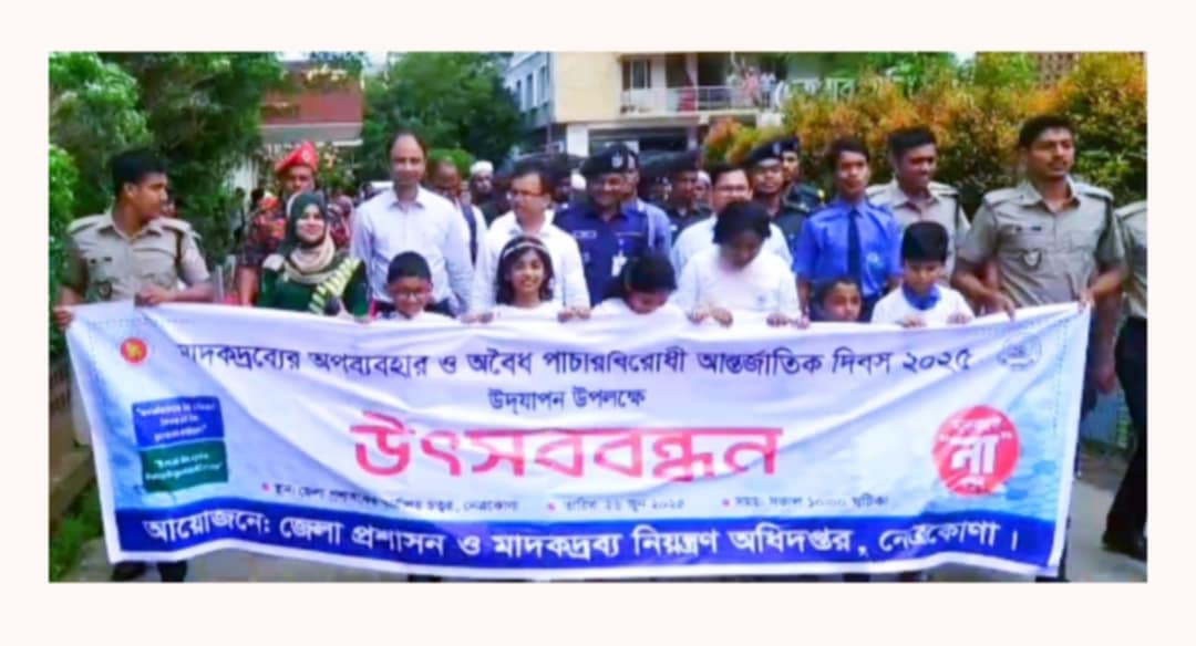 মাদকদ্রব্যের অপব্যবহার ও অবৈধ পাচারবিরোধী আন্তর্জাতিক দিবস উপলক্ষে নেত্রকোনায় র্যালী ও আলোচনা সভা অনুষ্ঠিত হয়েছে। আজ বৃহস্পতিবার সকালে জেলা প্রশাসন ও মাদকদ্রব্য নিয়ন্ত্রণ অধিদপ্তর জেলা কার্যালয়, নেত্রকোনা এই কর্মসূচীর আয়োজন করে।