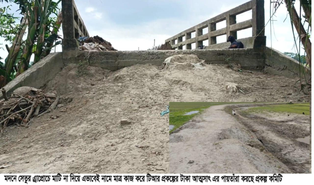 তবে সংশ্লিষ্ট দপ্তরের নিয়মিত মনিটরিং না থাকায় এমন অবস্থার সৃষ্টি হয়েছে বলে সচেতন মহল মনে করছেন। উপজেলা প্রকল্প বাস্তবায়ন অফিস সূত্রে জানা যায়, গ্রামীণ অবকাঠামো রক্ষণাবেক্ষণ( টিআর), কাবিকা ও খাবিটা কর্মসূচি প্রকল্পের আওয়াতায় উপজেলার ৭নং নায়েকপুর ইউনিয়নে বাশঁরী পাকা রাস্তা হতে মোয়াটি মোড় পর্যন্ত রাস্তায় মাটি ভরাট ২০২৪-২৫ অর্থ বছরে ৩ লাখ ৯০ হাজার টাকা বরাদ্দ পায়। প্রকল্পের সভাপতি সংরক্ষিত নারী ইউপি সদস্য লাখি আক্তার। প্রকল্পের অধিকাংশ কাজ রেখে নামে মাত্র কাজ করে অর্থ আত্মসাৎ করার পায়ঁতারা করছে। এ নিয়ে এলাকার সচেতন মহল প্রতিবাদ করলেও আর কোন কাজ করবে না বলে জানান প্রকল্পের সাধারণ সম্পাদক হেলাল মিয়া।