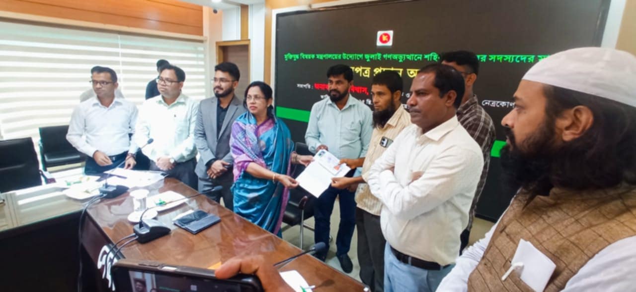 নেত্রকোনায় গণঅভ্যুত্থানে শহীদদের উত্তরাধিকারের মধ্যে সঞ্চয়পত্রের চেক বিতরণ