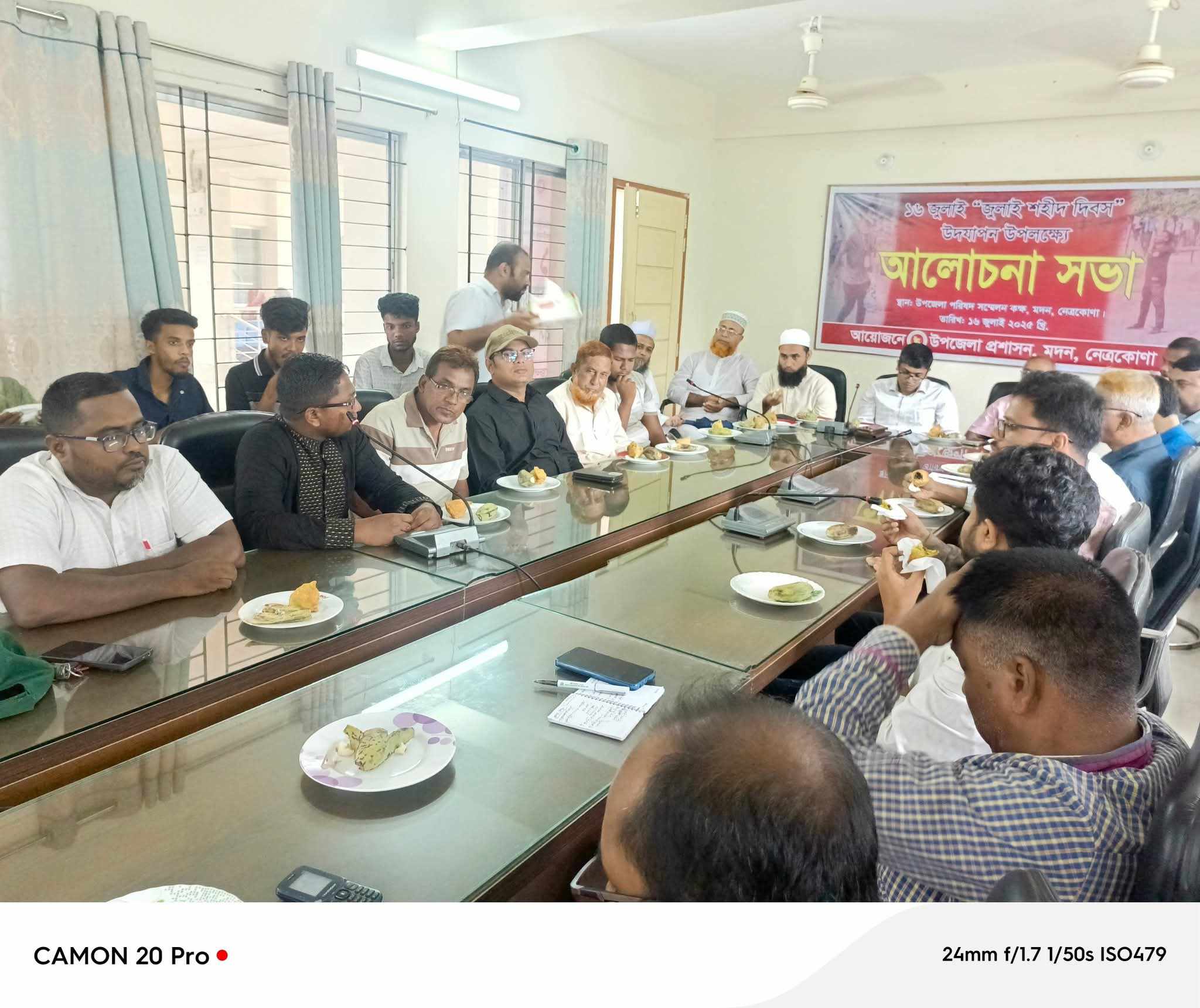 নেত্রকোনার মদন উপজেলায় জুলাই শহীদ দিবস উপলক্ষে এক আলোচনা সভা অনুষ্ঠিত হয়েছে।