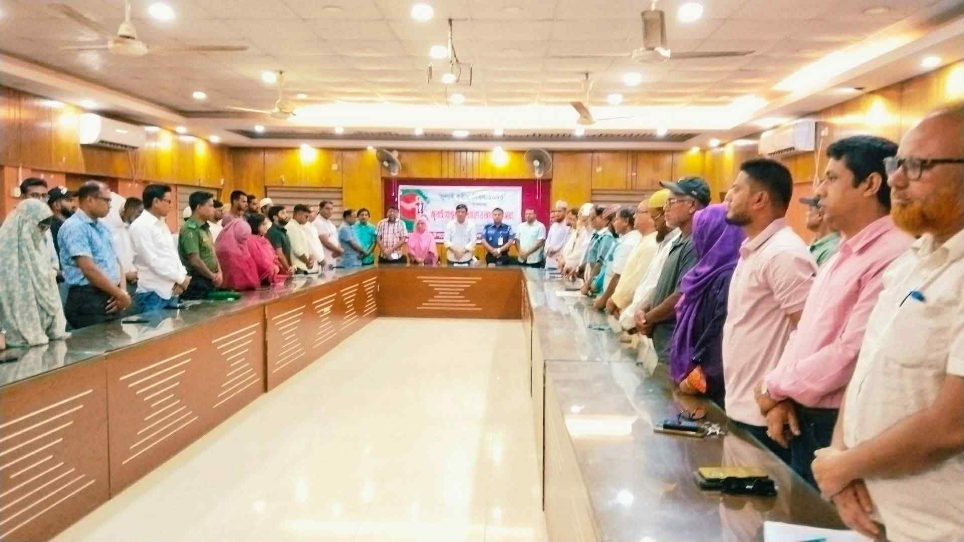 উপজেলা নির্বাহী কর্মকর্তা (ইউএনও) ইমদাদুল হক তালুকদারের সভাপতিত্বে এক মিনিট নীরবতা পালন ও পবিত্র কোরআন তেলাওয়াতের মাধ্যমে অনুষ্ঠান শুরু হয়।