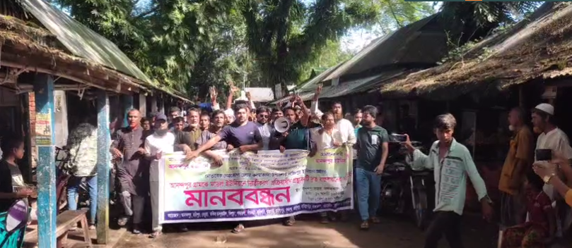 গতকাল রবিবার ১৭ই আগষ্ট বিকেল আনন্দপুর বাজারেএই মানববন্ধন অনুষ্ঠিত হয়। এতে অংশ নেয় ২০টি গ্রামের প্রায় ৭ শতাধিক মানুষজন।