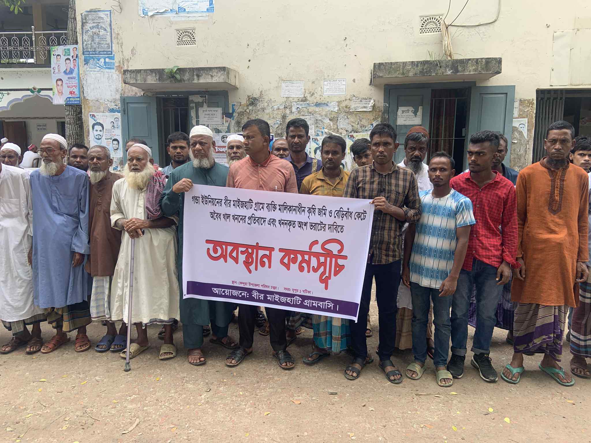 রবিবার (২৪ আগস্ট) দুপুর ২টায় বীর মাইজহাটি গ্রামবাসীর আয়োজনে উপজেলা পরিষদ চত্বরে এ কর্মসূচি অনুষ্ঠিত হয়। পরে উপজেলা নির্বাহী অফিসার ইমদাদুল হক তালুকদার বরাবর একটি স্মারকলিপি প্রদান করা হয়।