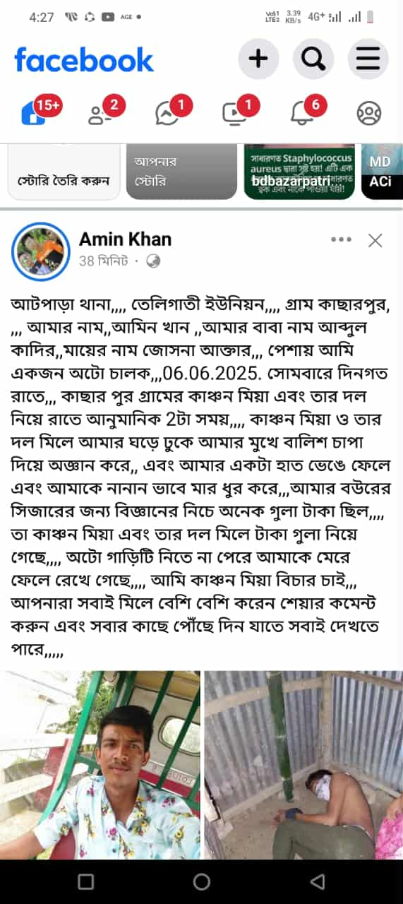 মলার বিবরণে উল্লেখ করা হয়, গত জুলাই মাসের ৭ তারিখ দিবাগত ভোর রাত ৪.০০ ঘটিকায় তার ছেলে ভিকটিম আমিনুল ইসলাম অরফে আমীন খানকে পাশের বাড়ির কাঞ্চন মিয়া ও অজ্ঞাত আরও তিন জন বাদিনীর বসত ঘরে ডুকিয়া হাত-পা বেঁেধে লোহার রড দিয়ে পিটিয়ে গুরুতর নীলা ফুলা ও হাড় ভাংগা জখম করে। তার ডাক চিৎকারে প্রতিবেশীরা এসে অজ্ঞান অবস্থায় ভিকটিমকে অটোরিক্সায় করিয়া নেত্রকোণা অধুনিক সদর হাসপাতালে পাঠানো হয় চিকিৎসার জন্য। চিকিৎসা শেষে তাকে বাড়িতে নিয়ে গিয়ে থানায় একটি মামলা দায়ের করা হয় প্রতিপক্ষের কাঞ্চন মিয়ার বিরুদ্বে। আটপাড়া থানা মামলা নং ০৯ তারিখ ২০ জুলাই ২০২৫, ধারা ৪৪৭,৩২৩,৩২৫, ৩০৭,৫০৬