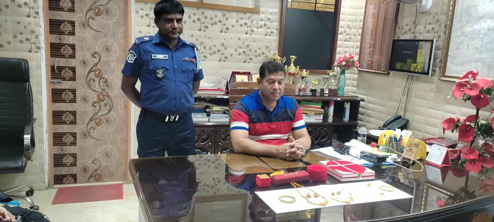 নেত্রকোণা মডেল থানার ভারপ্রাপ্ত পুলিশ কর্মকর্তা কাজি শাহনেওয়াজ গতকাল রাতে মীম আক্তারের কাছে তার হারিয়ে যাওয়া স্বর্ণালংকার বুঝিয়ে দিয়েছেন।
