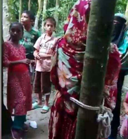 রংপুরের স্বামী – স্ত্রী মিলে গৃহবধূকে গাছে বেঁধে মারধর