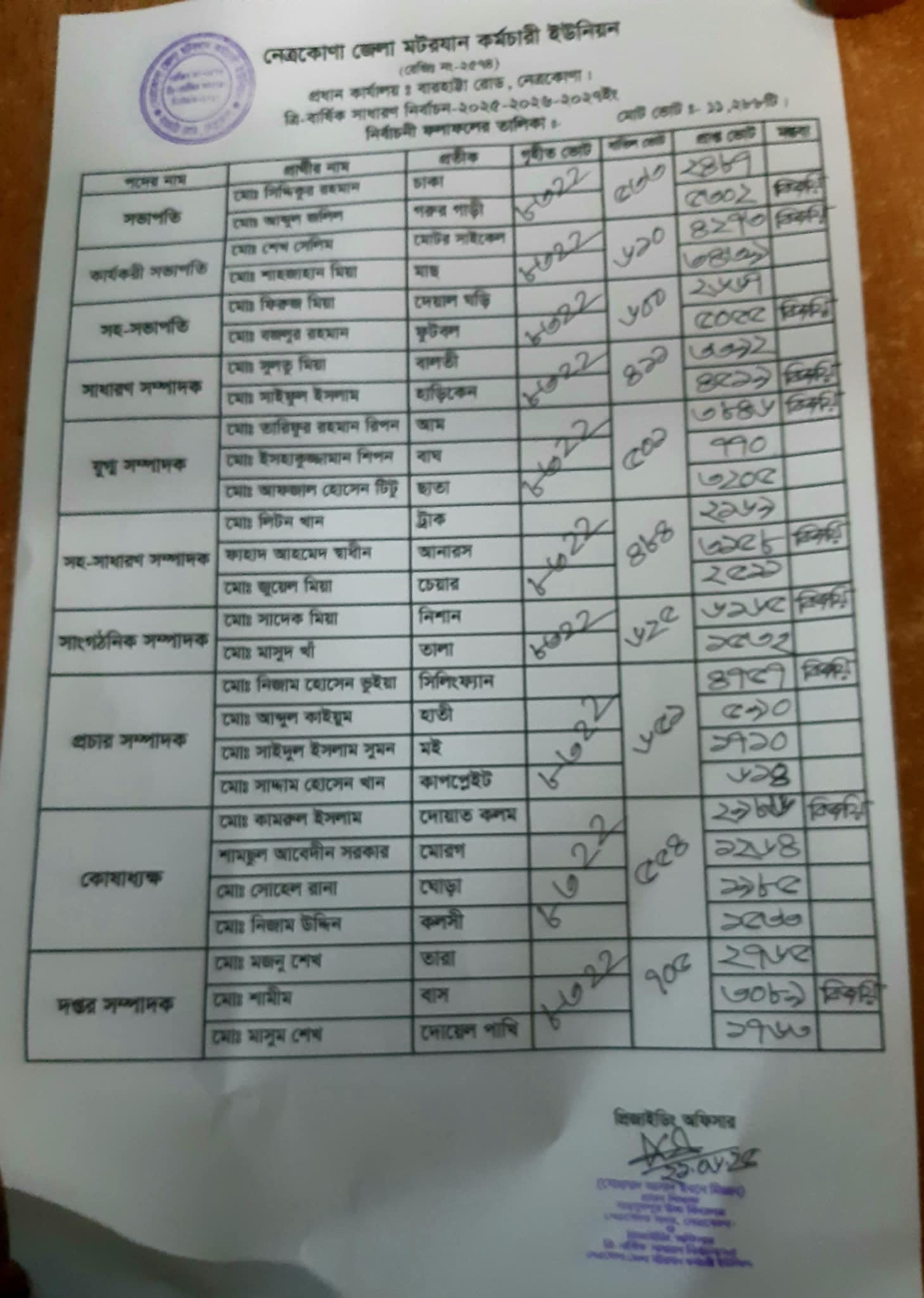 গতকাল ২০ জুন শনিবার ১/ জেলা মোটরযান শ্রমিক ইউনিয়নের নির্বাচন । নেত্রকোণা জেলা মোটরযান শ্রমিক ইউনিয়নের