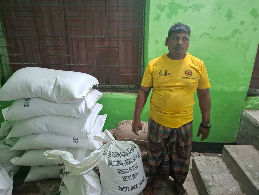 গ্রাম পুলিশ স্বপন সাহার বসতঘর থেকে ২০ বস্তা সরকারি চাল উদ্ধার