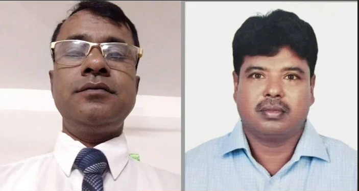 ছবি বামে সাংবাদিক মৃনাল কান্তি দেব ও ডানে  শফিকুল ইসলাম। সংগৃহীত ছবি নেত্রকোনায় এক বছর আগে বিএনপি দলীয় কার্যালয়ে হামলা-ভাঙচুরের