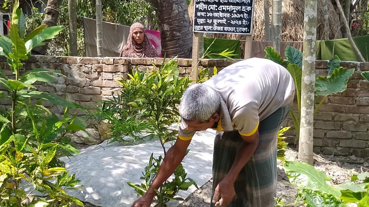 পিরোজপুরে এমদাদুল হকের কবরের পাশে দাঁড়িয়ে এখনও বিলাপ করছেন মা