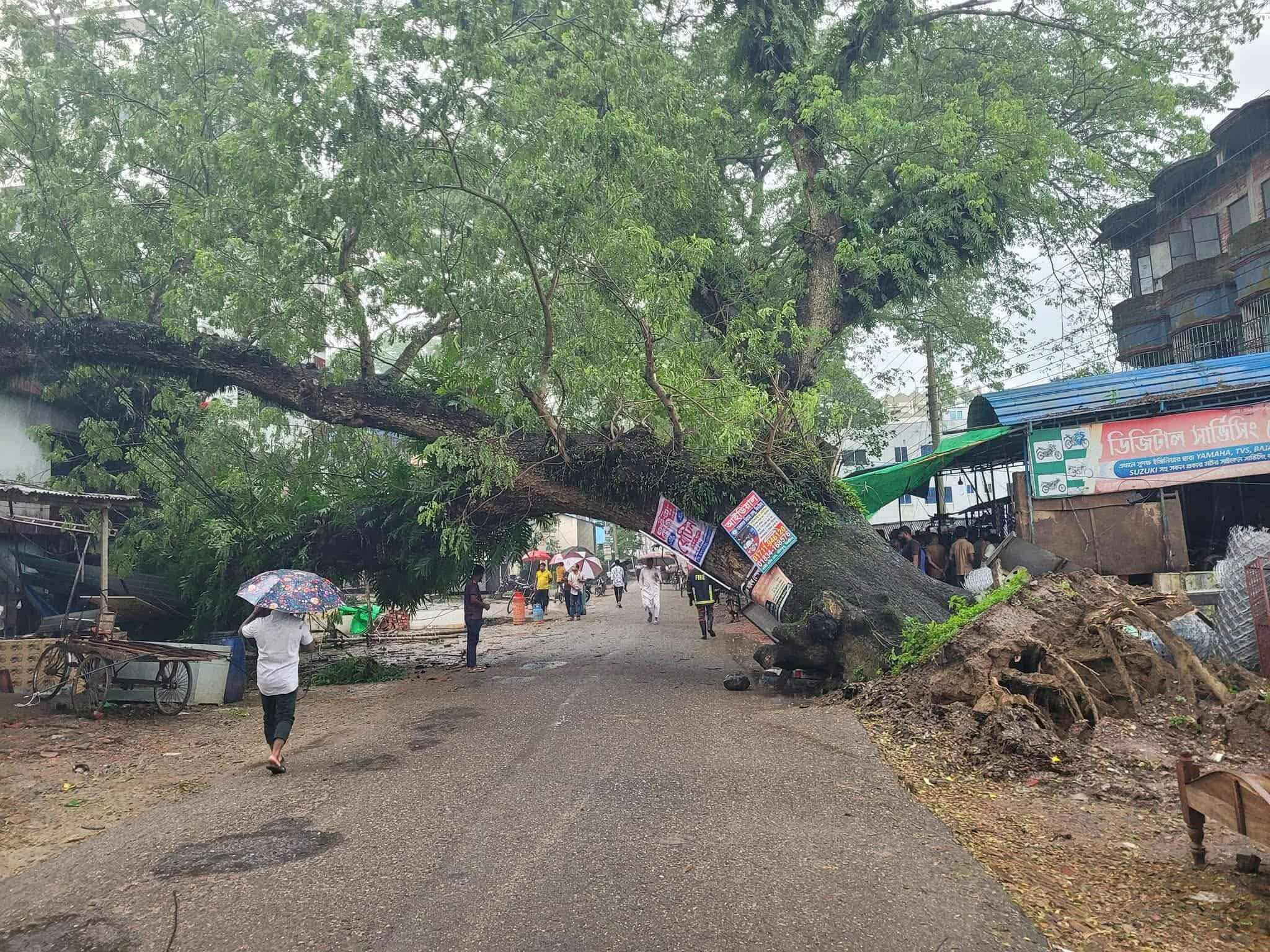 কালীগঞ্জে শতবর্ষী কড়াইগাছ উপড়ে পড়ে রেস্টা ক্ষতিগ্রস্ত