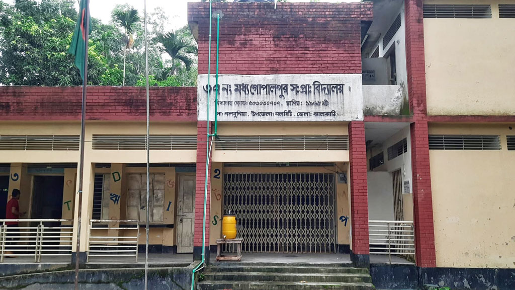 ঝালকাঠির নলছিটি উপজেলার ৩৭ নং মধ্য গোপালপুর সরকারি প্রাথমিক বিদ্যালয়ে শিক্ষকের অনুপস্থিতি, সময়মতো বিদ্যালয়ে না আসা এবং দপ্তরির দায়িত্বে গাফিলতির