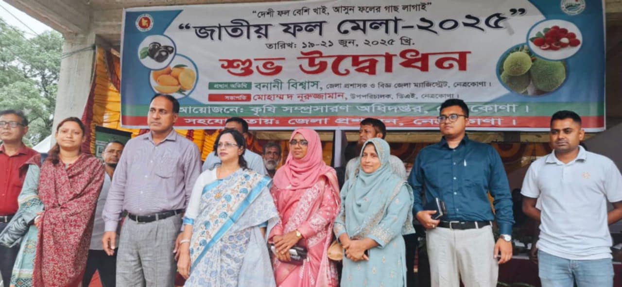 “দেশি ফল বেশি খাই,আসুন ফলের গাছ লাগাই”—এই প্রতিপাদ্যকে সামনে রেখে নেত্রকোণায় শুরু হয়েছে তিন দিনব্যাপী জাতীয় ফল মেলা-২০২৫। কৃষি সম্প্রসারণ