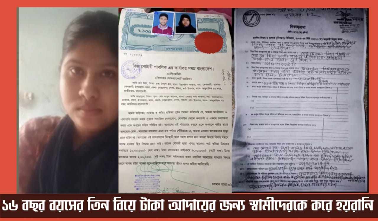 নেত্রকোণার মদনে কিশোরির ১৬ বছর বয়সে ৩ বিয়ে, টাকার জন্য স্বামীকে হয়রানী