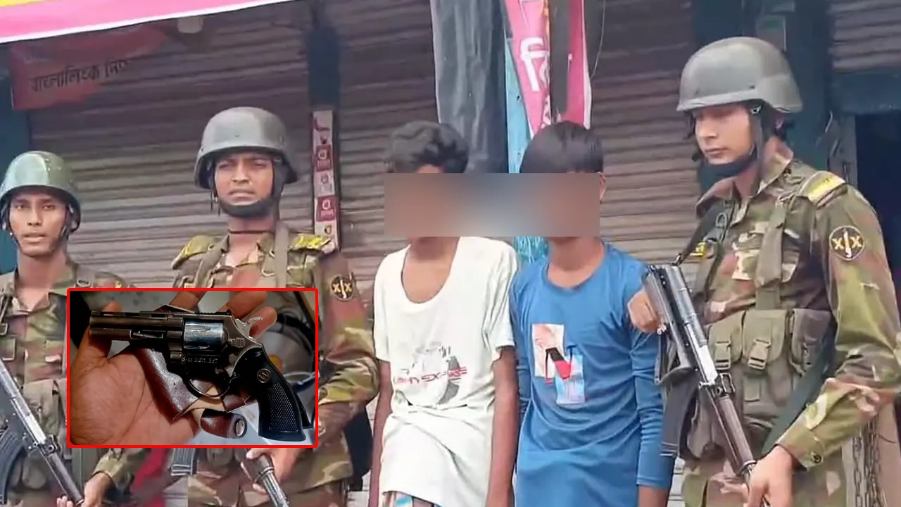 ছবি সংগৃহীতঃ দুই কিশোর হঠাৎ ‘খেলনা পিস্তল’ নিয়ে এক ব্যবসায়ীর দোকানে চাঁদা দাবি করে। টেবিলের ওপর পিস্তলটি রেখে গ্লাসে একটি