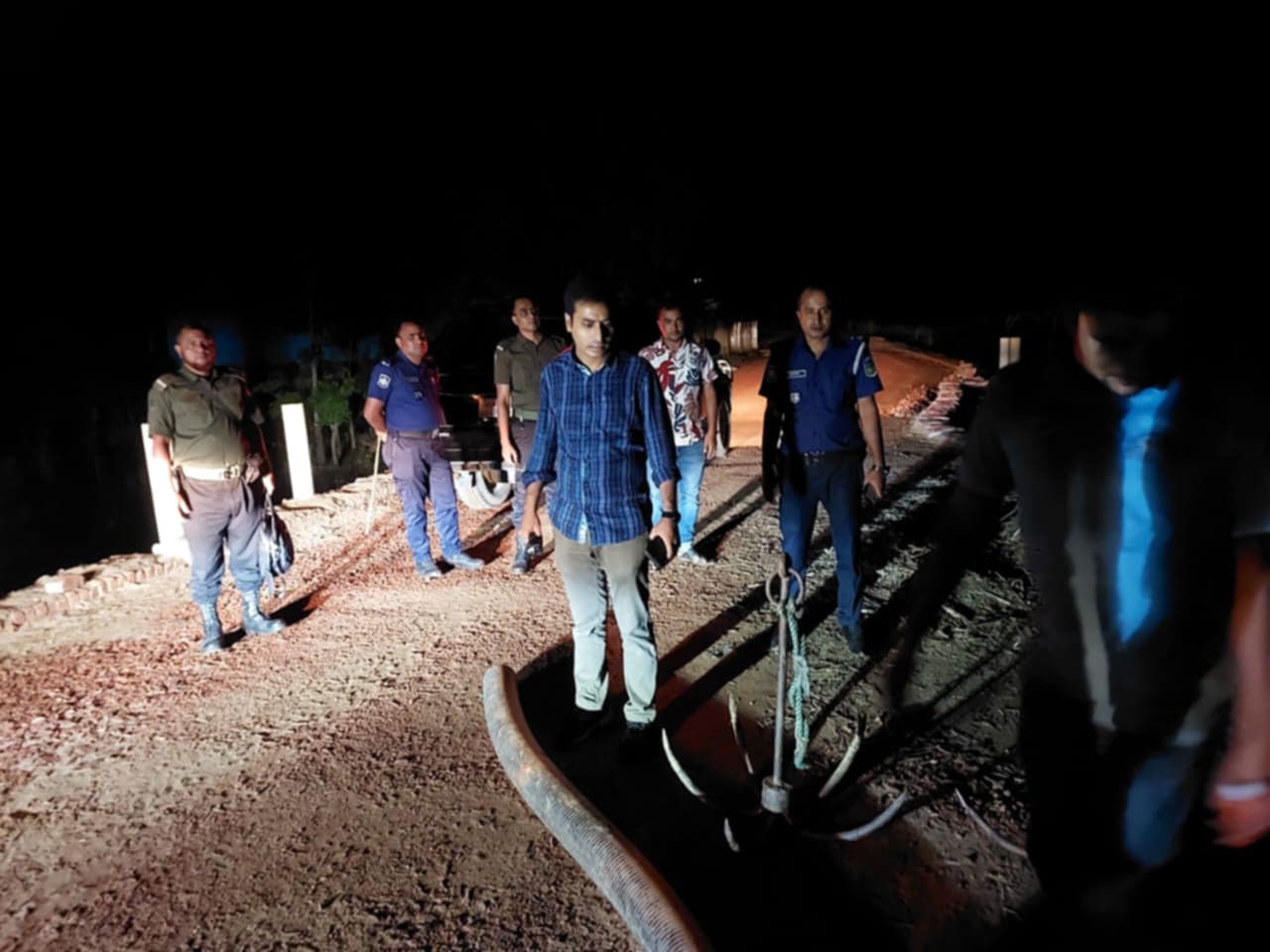 নেত্রকোণায় অবৈধ বালু উত্তোলন ঠেকাতে যৌথ অভিযান জব্দ নৌকা