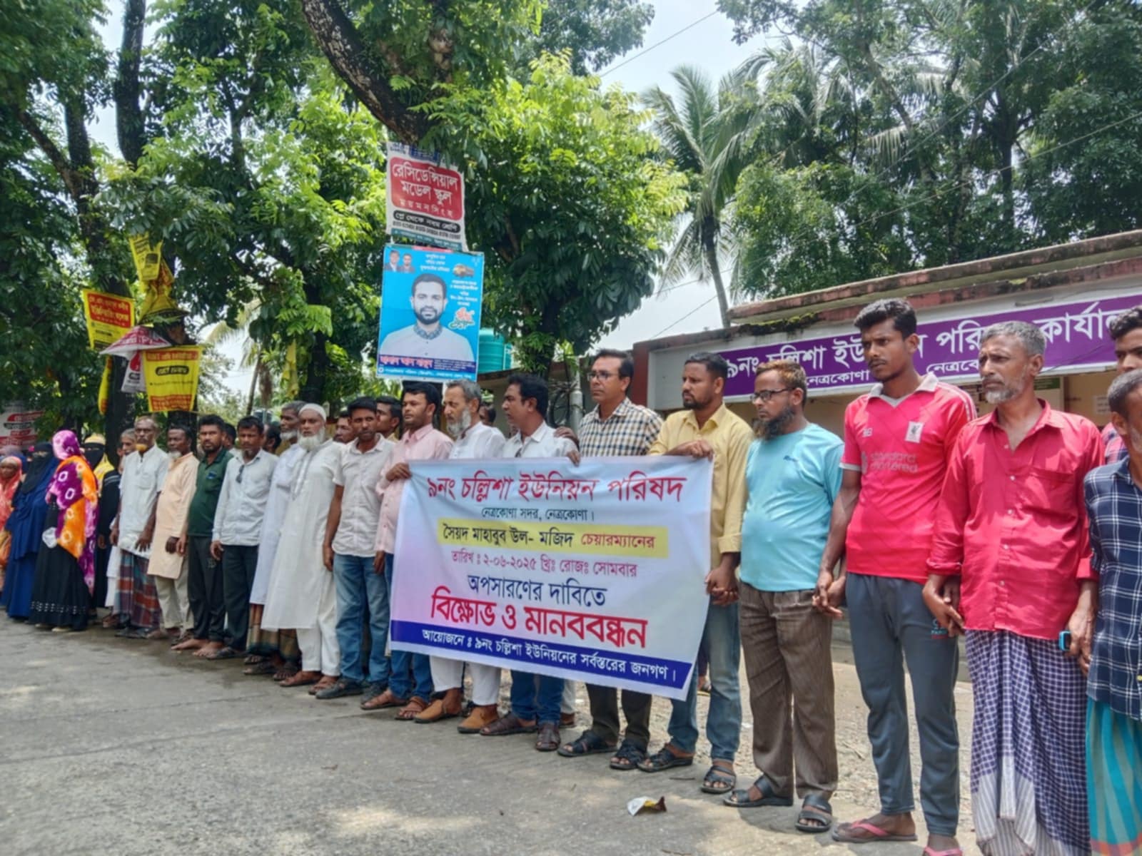 নেত্রকোনায় চেয়ারম্যানের অপসারণ দাবিতে মানববন্ধন ও বিক্ষোভ