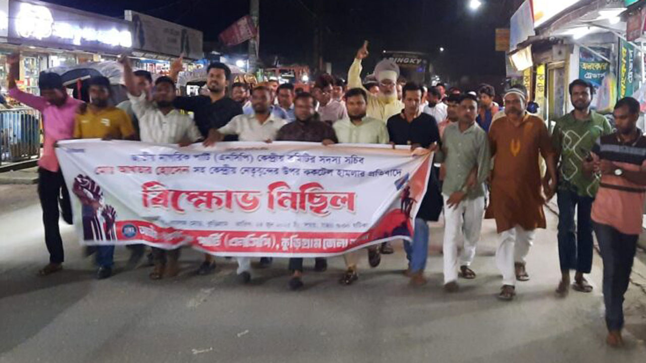 ছবি সংগৃহীত কেন্দ্রীয় সদস্য সচিব আখতার হোসেনসহ কেন্দ্রীয় নেতাদের ওপর ককটেল হামলার প্রতিবাদে কুড়িগ্রামে বিক্ষোভ মিছিল ও সমাবেশ করছে জাতীয়