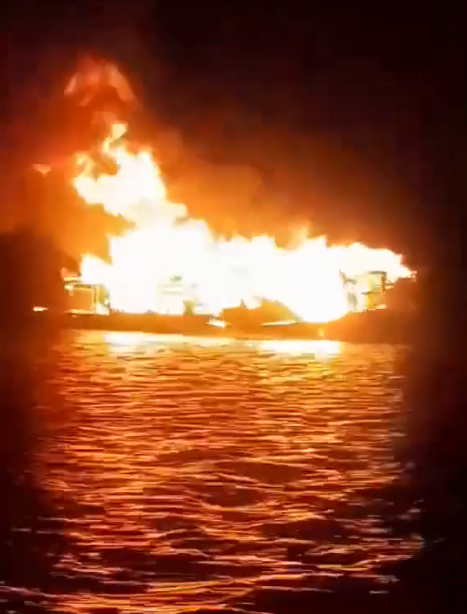 ভয়াবহ আগুন টাঙ্গুয়ার হাওরে পর্যটকবাহী নৌকায়