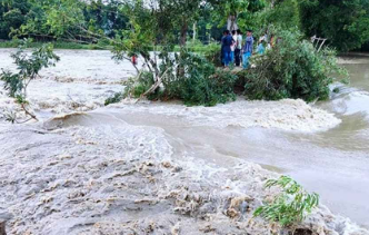 ছবি সংগৃহীতঃ ভারত থেকে নেমে আসা তীব্র পাহাড়ি ঢলে সীমান্তবর্তী সুরমা-কুশিয়ারা নদীতে বন্যা প্রতিরক্ষা বাঁধের বিভিন্ন স্থানে ভাঙন দেখা দিয়েছে।