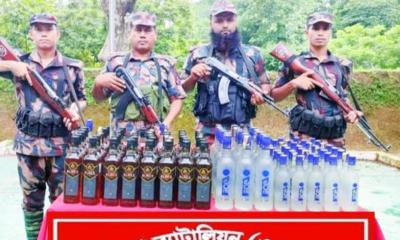 বিজিবির অভিযানে ১১০ বোতল ভারতীয় মদ জব্দ