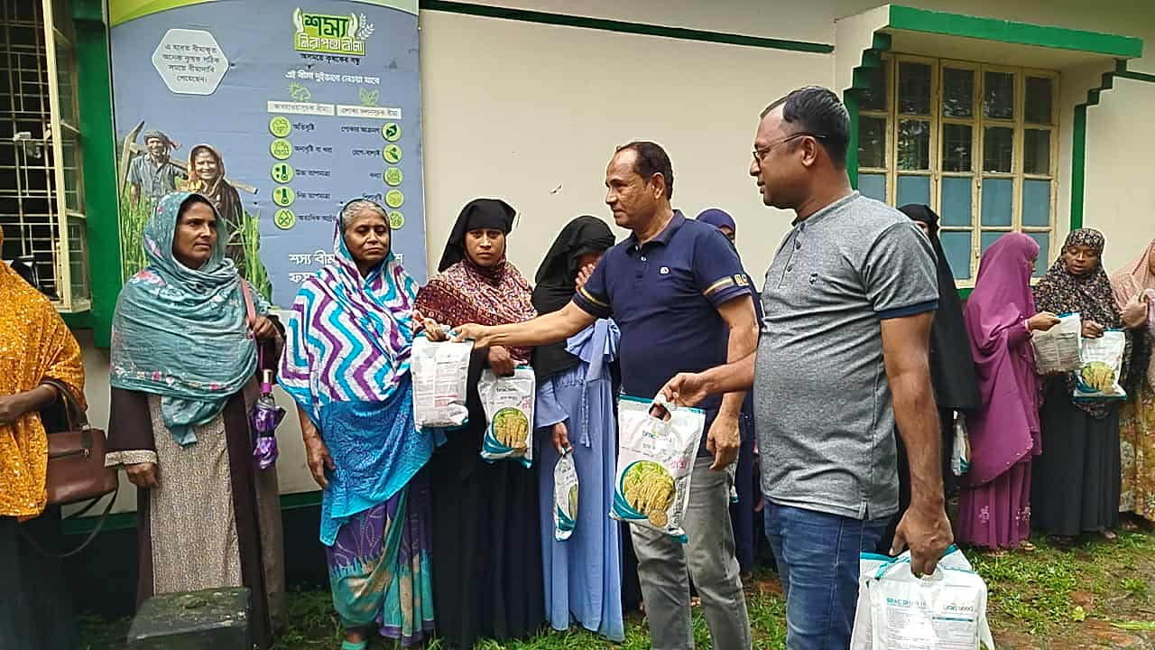নেত্রকোনার মোহনগঞ্জে ব্র্যাকের উদ্যোগে প্রান্তিক কৃষকদের মাঝে উন্নত ধান বীজ বিতরণ